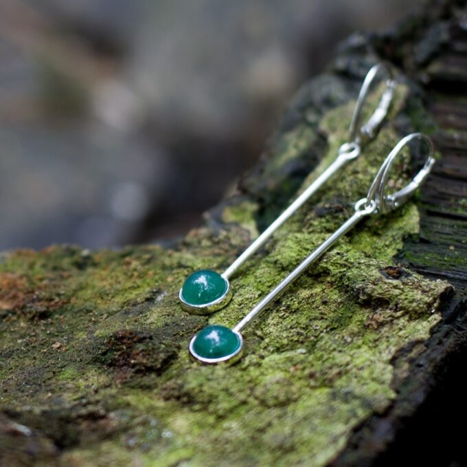 Kolczyki wykonane ze srebra, z zielonymi agatami.