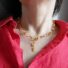 Naszyjnik Barbra jest klasyczny, doskonale komponuje się z różnym stylizacjami, od casual, biznesowe po wieczorowe, nigdy nie wyjdzie z mody. Klasyka gatunku połączona z odrobiną artystycznej swobody. Rytm ogniw naszyjnika Barbra to tak zwany “kontrolowany chaos”, w równych odstępach powtarza się ten sam kształt ogniwa, przerywany niepowtarzalnym, “przypadkowym”. Naszyjnik Barbra jest zaprojektowany do noszenia blisko przy szyi, można go zapiąć na każdym ogniwie, dopasować do różnych dekoltów. Został wykonany ze srebra, próba 925 pokryty 24 złotem. Długość naszyjnika -47 cm, razem z zapięciem.