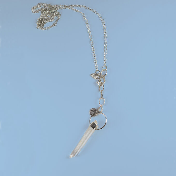Połączyłam oprawiony w srebro kryształ ze srebrnymi ogniwami, dzięki czemu można regulować długość naszyjnika.