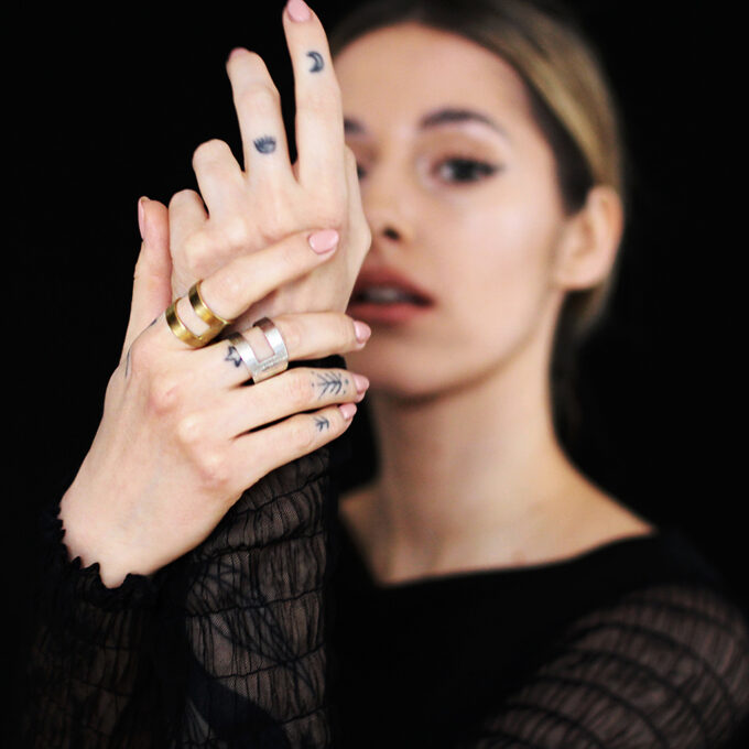 Obrączka- pierścień wykonana ze srebra, złocona 23 karatowym złotem.
