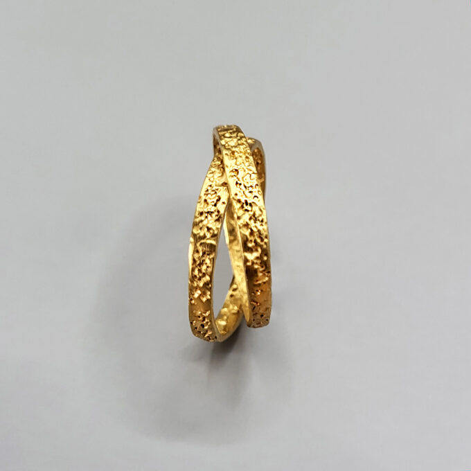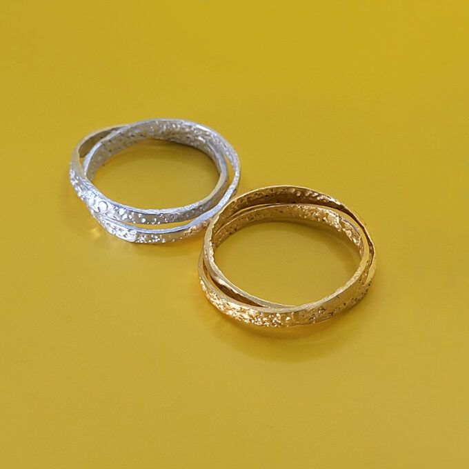 Mimi- a double ring to feel confident and complete, always together 🙂 Joined together, the two delicate rings create a spatial ring – a ring that creates a whole. The surface of the rings has a delicate, slightly shiny texture that beautifully reflects in the light.