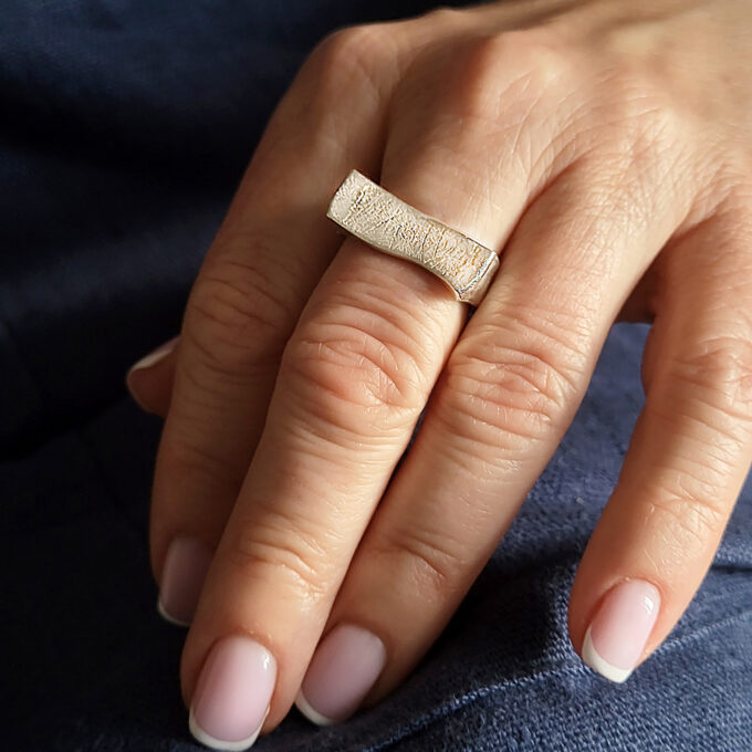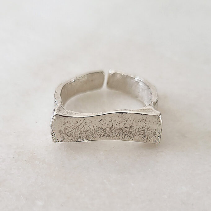 The Bridge signet ring is made of sterling silver, has an adjustable ring, size 18/20. Other sizes are on request.
